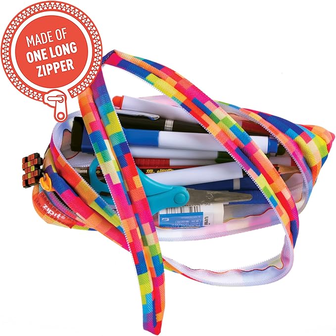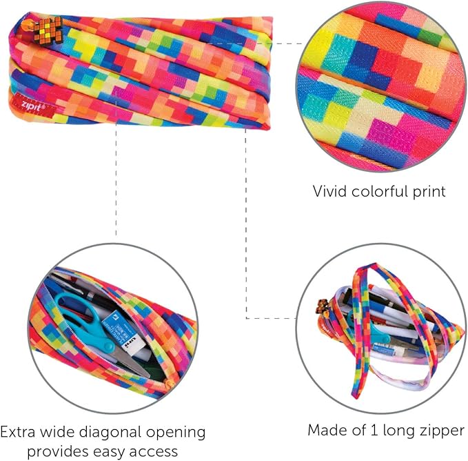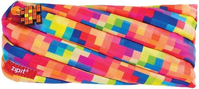 ZIPIT - Pixel Pencil Case for Kids, Large Capacity Pencil Pouch, Holds Up to 30 Pens, Made of One Long Zipper! (Multi)