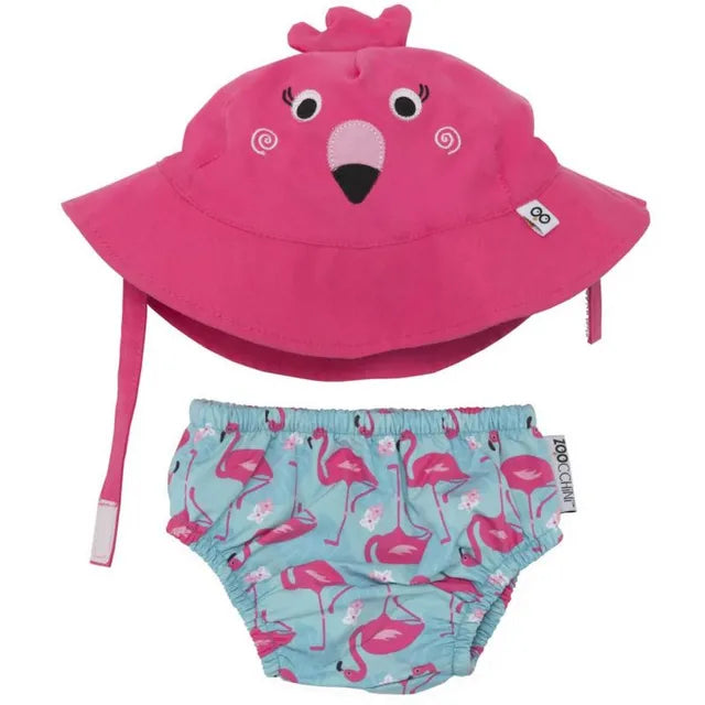 Your little one will look oh-so-cute taking a dip in the ocean or the pool, and your baby's swim will also be pool-friendly! ZOOCCHINI's worry-free Reusable, Waterproof Swim Diaper & Sunhat Sets for your baby have UPF sun protection and are easily washable for simple care and maintenance. Our Reusable Waterproof Swim Diapers are lined with comfortable, soft mesh liner, and have an adjustable waist, tied to ensure a snug but comfortable fit. Unlike regular diapers, our Swim Diapers are designed to contain solid waste, which is mandatory for public pool safety. Paired with the Reusable Swim Diapers, our complementing Baby Sun Hats offer all day sun protection - a great way to enjoy the outdoors and have fun in the sun without worry. Make good choices and stay safe in the sun. UPF50+ clothing helps protect against sun, but sunscreen should be applied to any skin that is not covered by a sun protective garment (face, ears, hands, etc.)