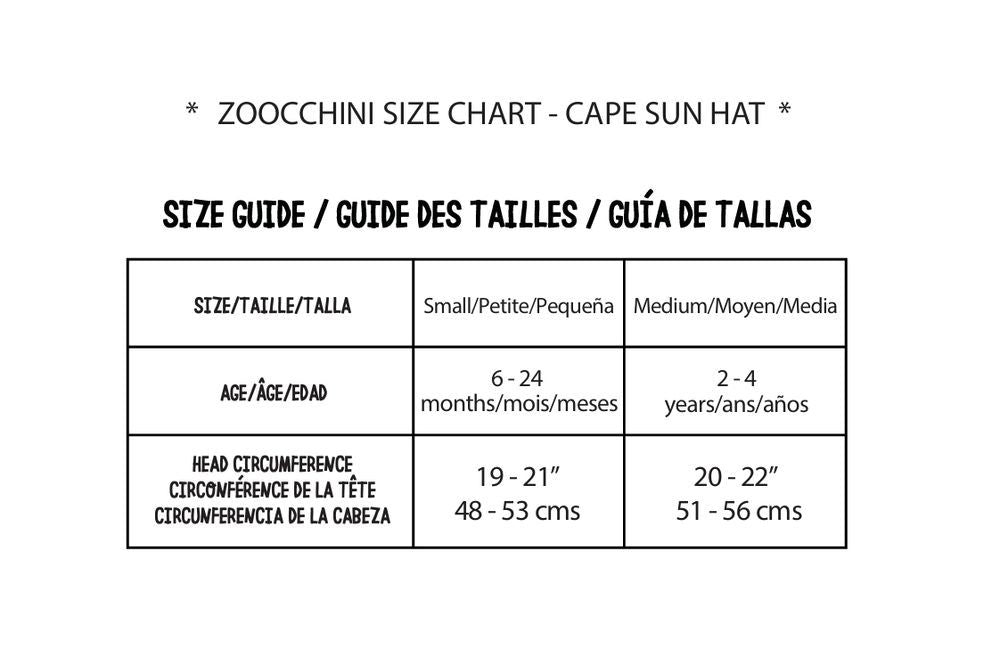 Our versatile and adjustable sunhat is made in the same light-weight breathable fabric as our adorable animal face UPF50+ Sunhats. Certified UPF50+ rating and packed with comfort and safety features you love. Packed with comfort and safety features you love. A purposefully designed oversized high crown silhouette allows for better ventilation. Front brim is padded with a soft yet firm EVA foam. Underside brim fabric in contrast colors protects your little one's eyes by absorbing harsh glares on bright summer days. An extra-long double layer back neck cape for neck and shoulders coverage, fully covered crown - this versatile sunhat offers all day sun protection for your child's head, face, neck and shoulders. Practical and functional design features include elastic at crown back seam - allows a comfortable This versatile and adjustable sunhat is made in the same light-weight breathable fabric as our adorable animal face UPF50+ Sunhats. Certified UPF50+ rating and packed with comfort and safety features you love. Packed with comfort and safety features you love.